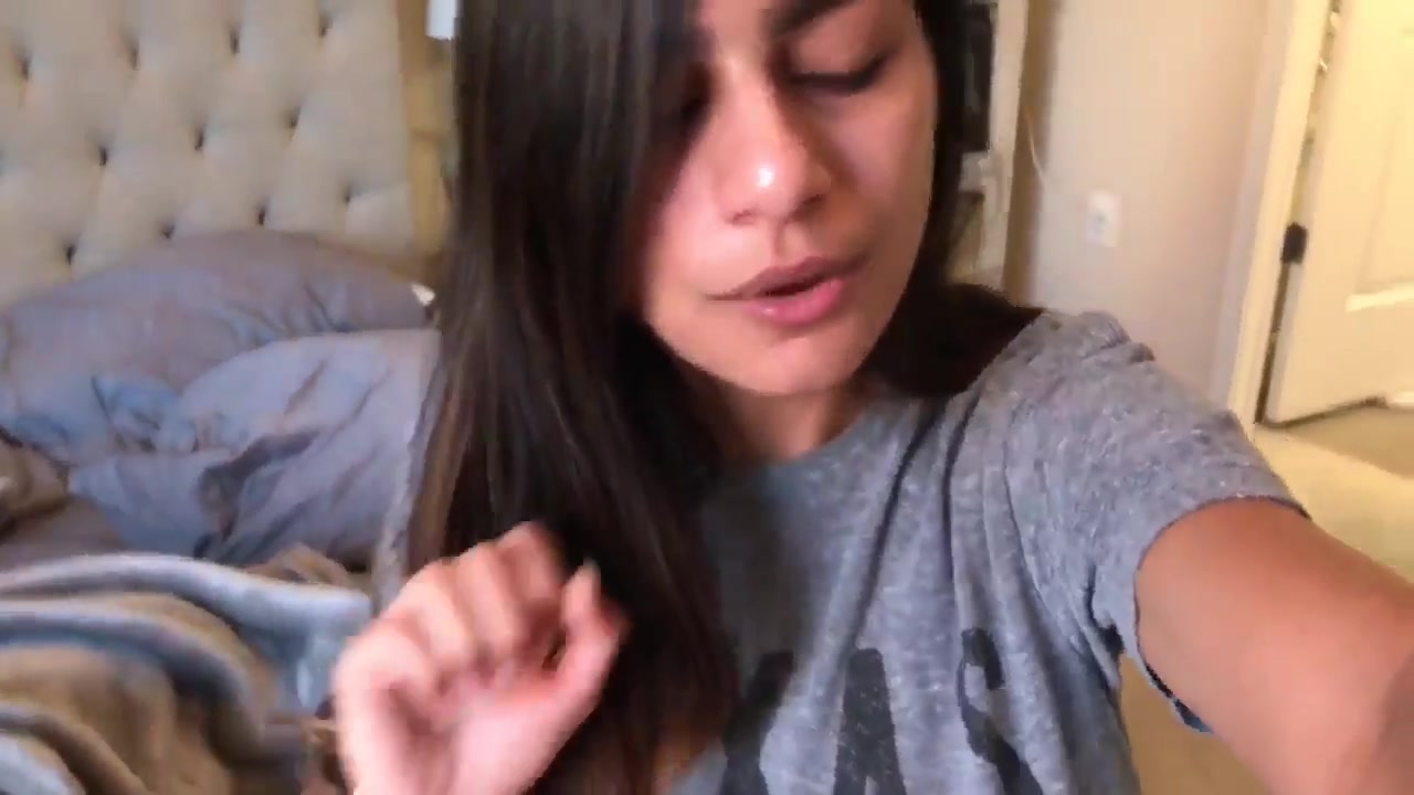 Mia Khalifa attractive slut caresses shaved cunt