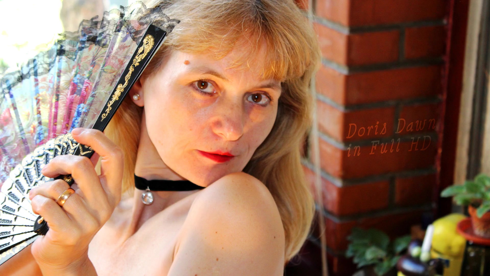 Doris Dawn shy slut caresses shaved cunt