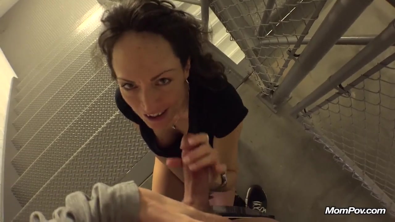 porn on the stairwell. The black-haired mother decided to play pranks, climbing up the steps and lifting her skirt and began to show her tired hole. Upstairs she decided to put her fingers in it, rising to the very top took off her panties and made a first-class blowjob after rested on the railing and felt it's in itself .;