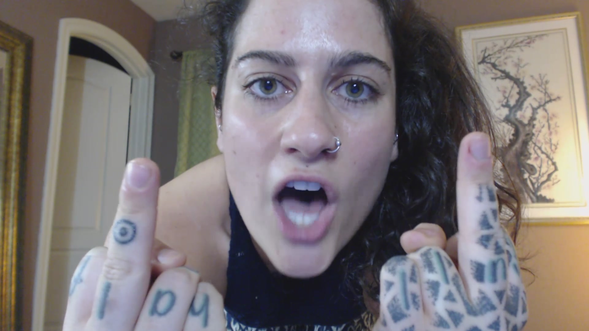 Erin Marie O'Keefe aka Goddess Green Eyed cute lady caresses shaved cunt