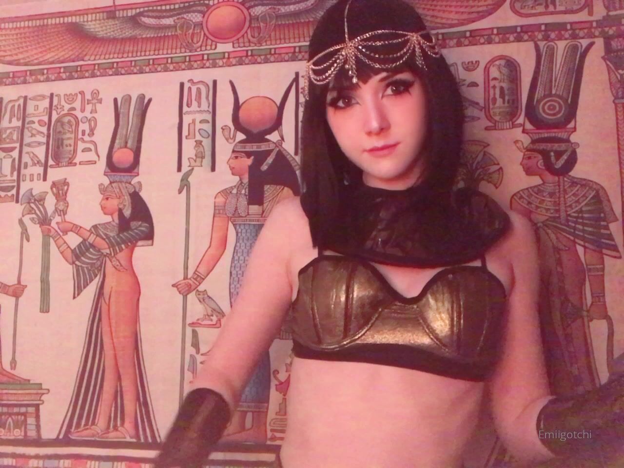 emiigotchi graceful devil with her palm rubs her vagina